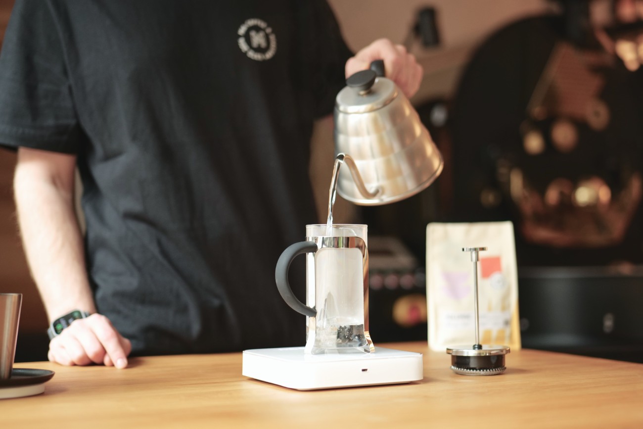 Before adding ground coffee, we recommend pouring hot water into the French press and then disposing of it. This step will thoroughly warm the device and improve the extraction process.
