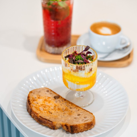 In the morning, the scent of freshly baked pastries and strong coffee from selected beans will greet you. During the day, you can have breakfast, brunch, or one of several hearty lunches. We make everything ourselves - we bake cakes, pastries, and sweet baked goods, prepare homemade dishes from quality ingredients, and pay attention to every detail.